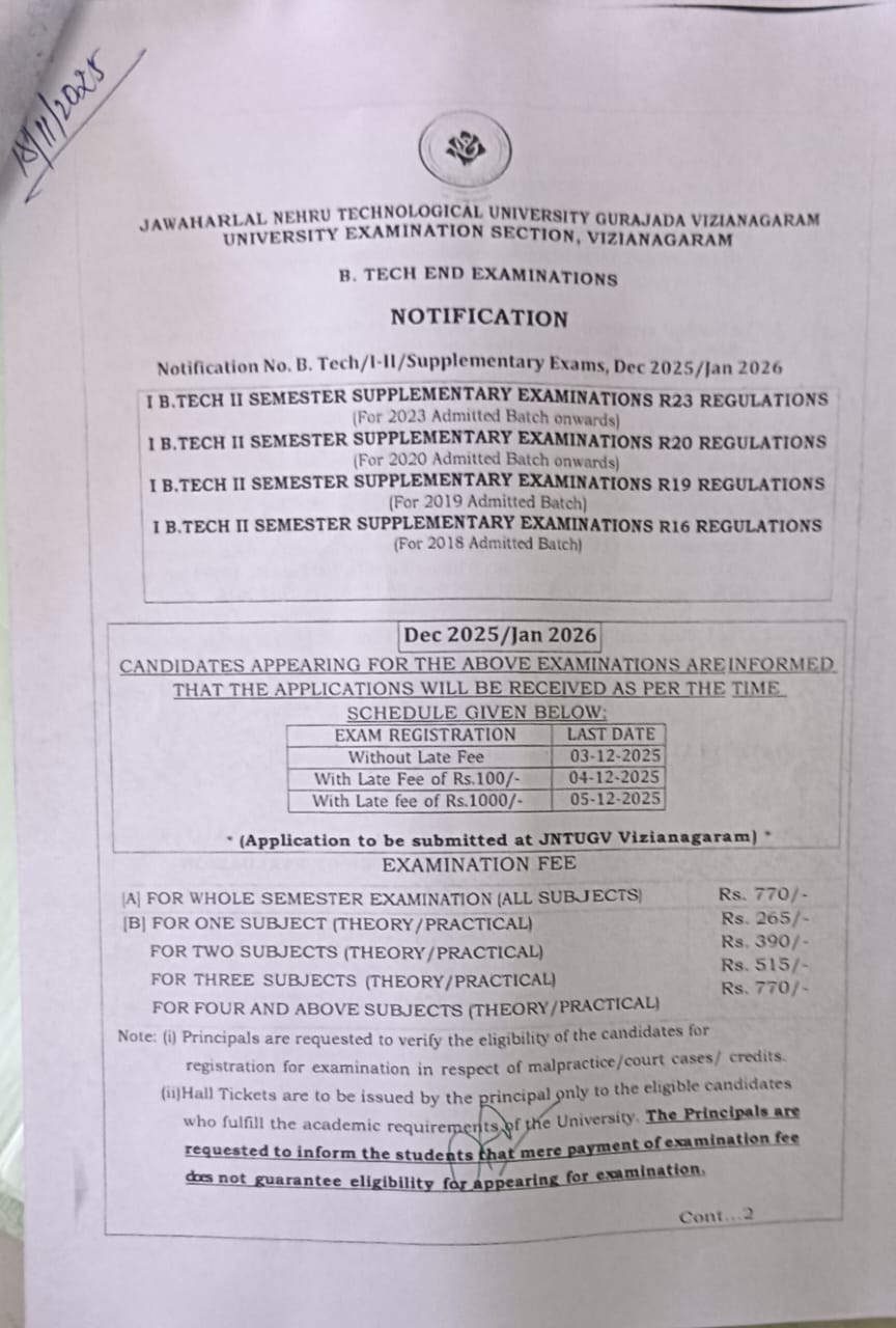 2025 - 2026 I B Tech II Supply Exam Notification